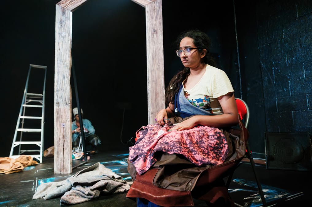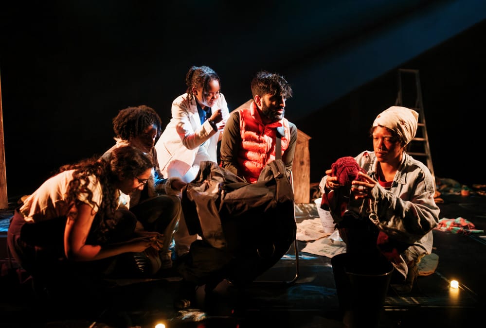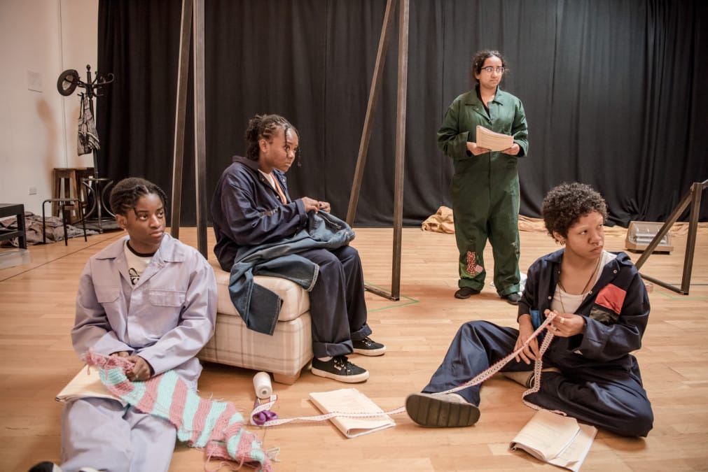 A community clothes mending circle is locked in by a terrible storm, their safe space under threat by a stranger who arrives with very differing views to their own.