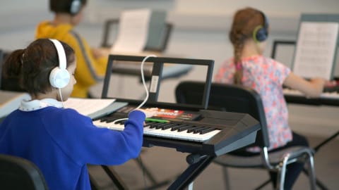 This large group keyboard class is for complete beginners to those who have been learning for a couple of terms.